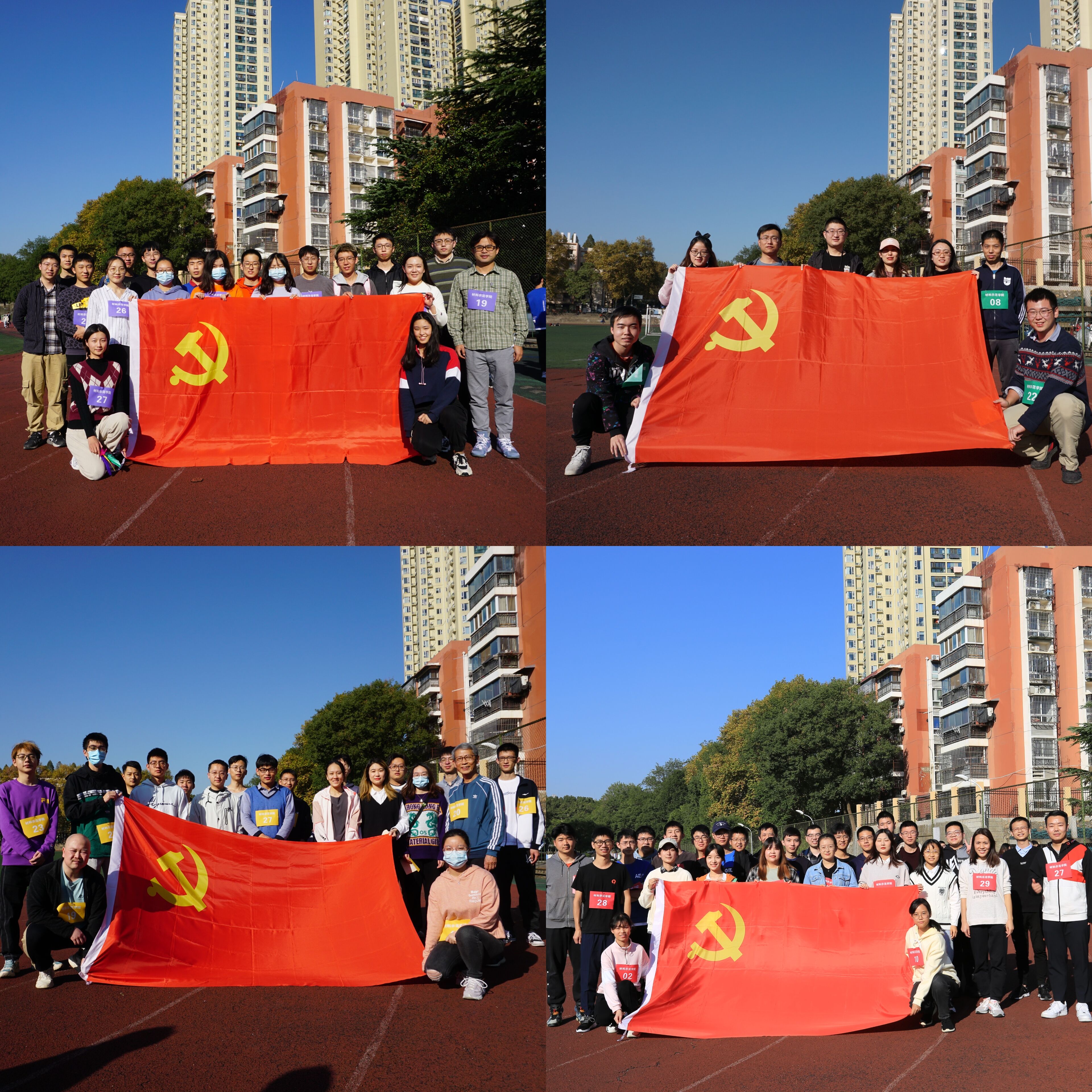 初冬暖阳晴空碧,几缕白云,湛湛蓝如洗,四支学生党支部与教工党员组成了四支队伍参加了比赛,2017级预备党员筹备并组织了本次比赛。在裁判们简单介绍比赛规则后,激烈的角逐便开始了。虽然平时老师同学都专注学术,但运动时他们毫不逊色,每个队员都认真比赛,周围队友们热情助威呐喊,一派热火朝天的景象。