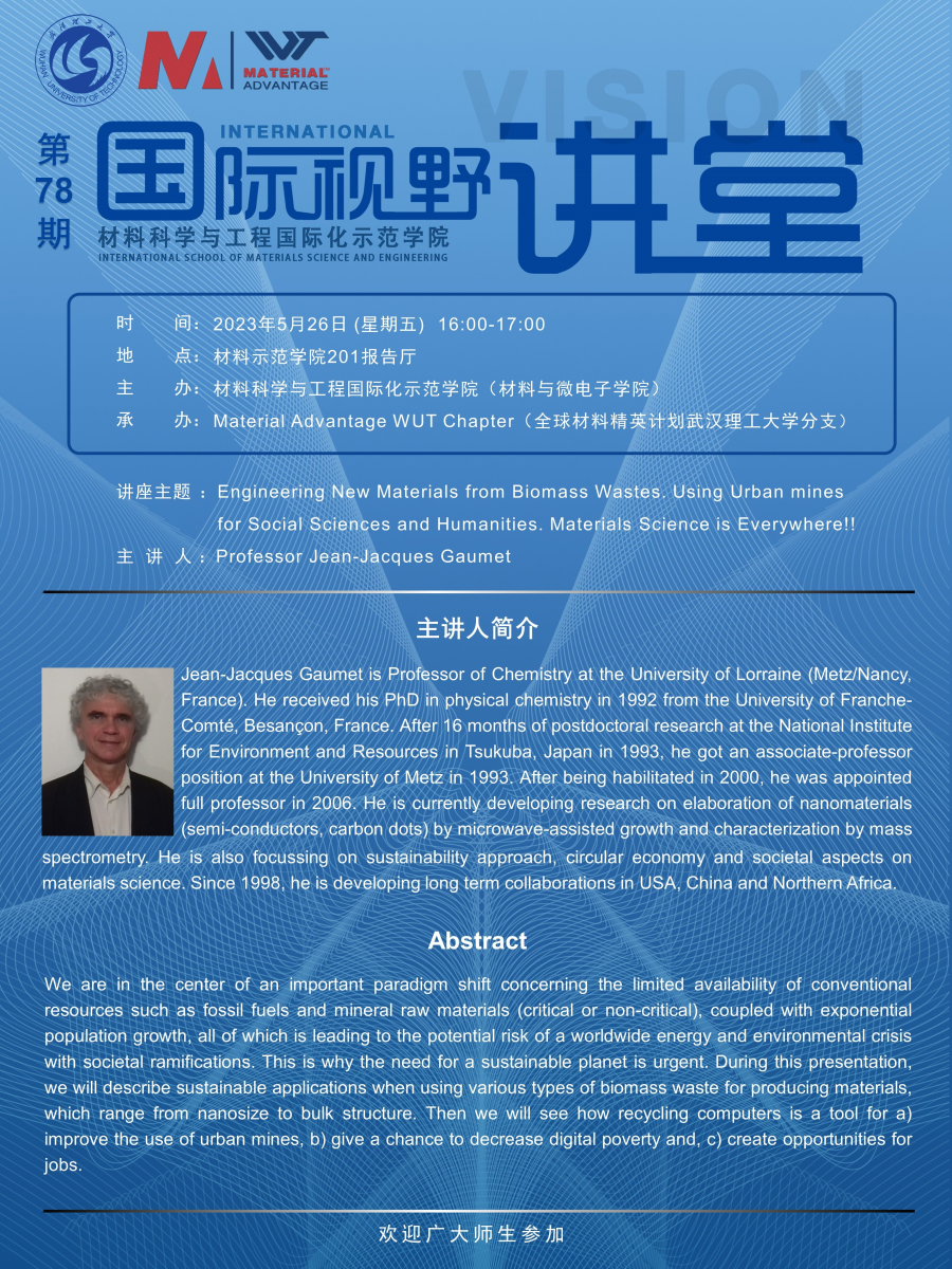 【国际视野讲堂】第78期:法国洛林大学Jean-Jacques Gaumet教授学术报告会
