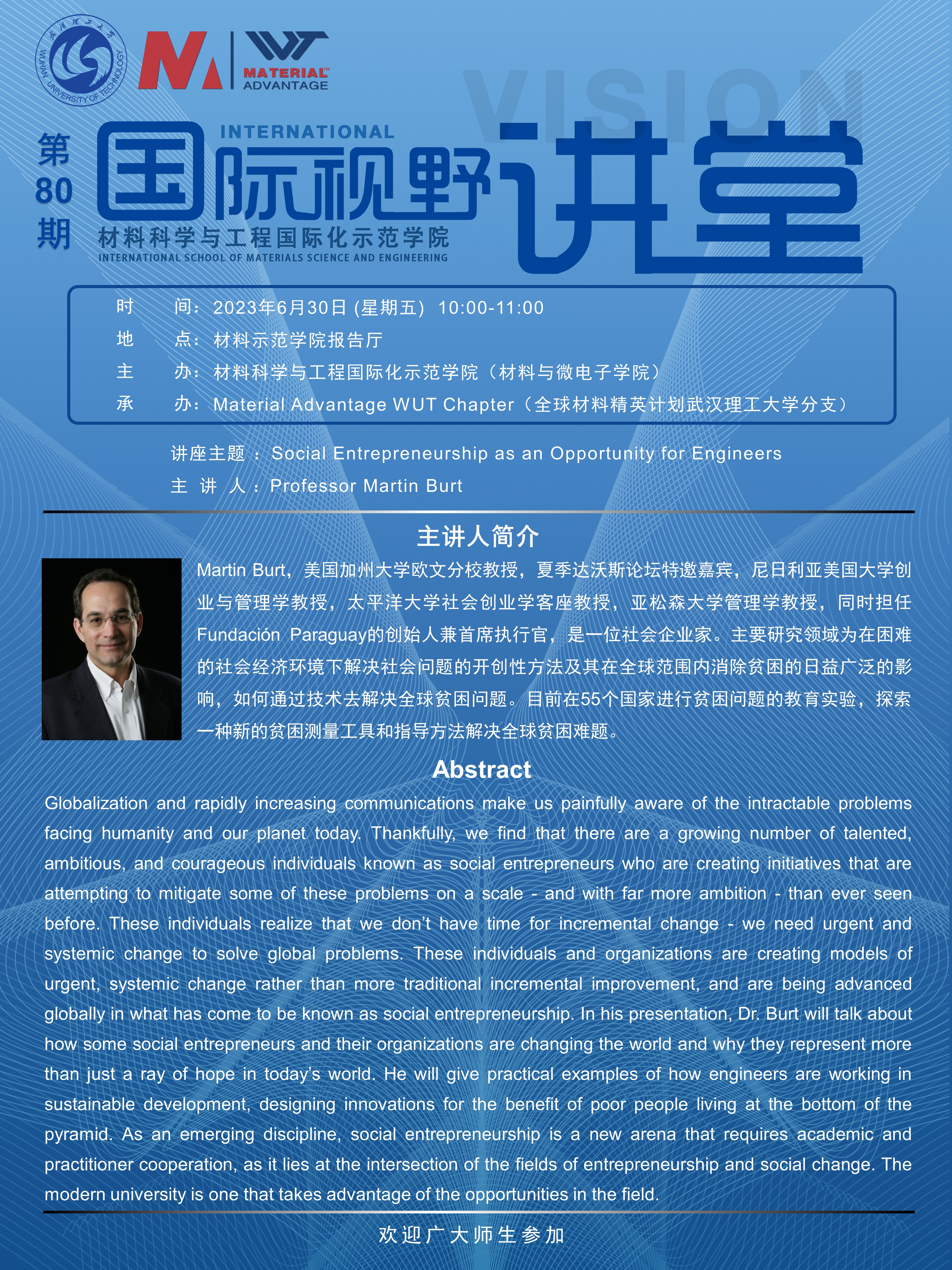 【国际视野讲堂】第80期:美国加州大学欧文分校Martin Burt教授学术报告会