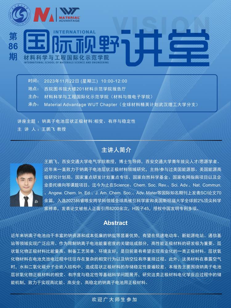 【国际视野讲堂】第86期:西安交通大学王鹏飞教授学术报告会