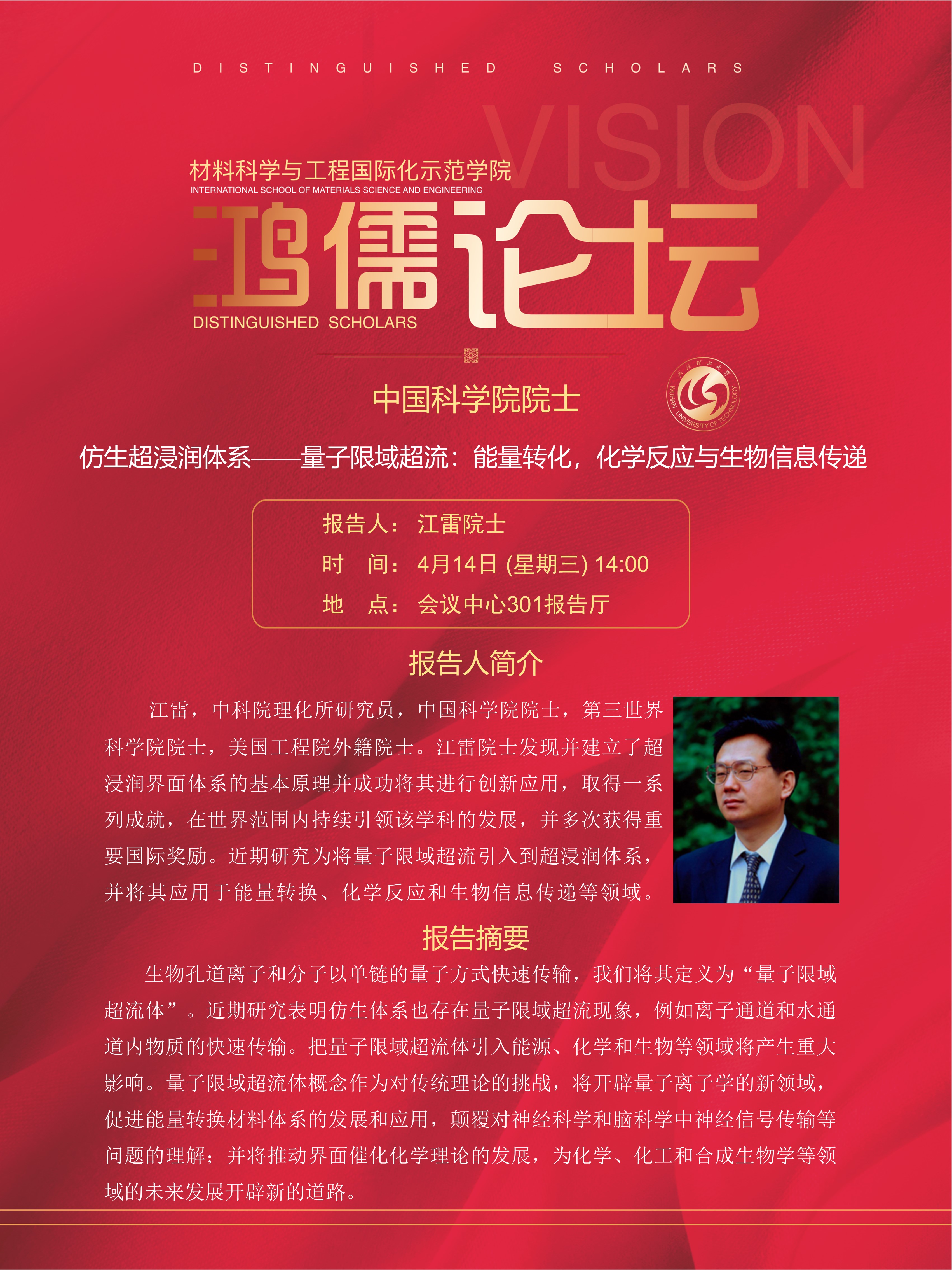【鸿儒论坛】第27期:中国科成人动作片院士江雷教授学术报告会