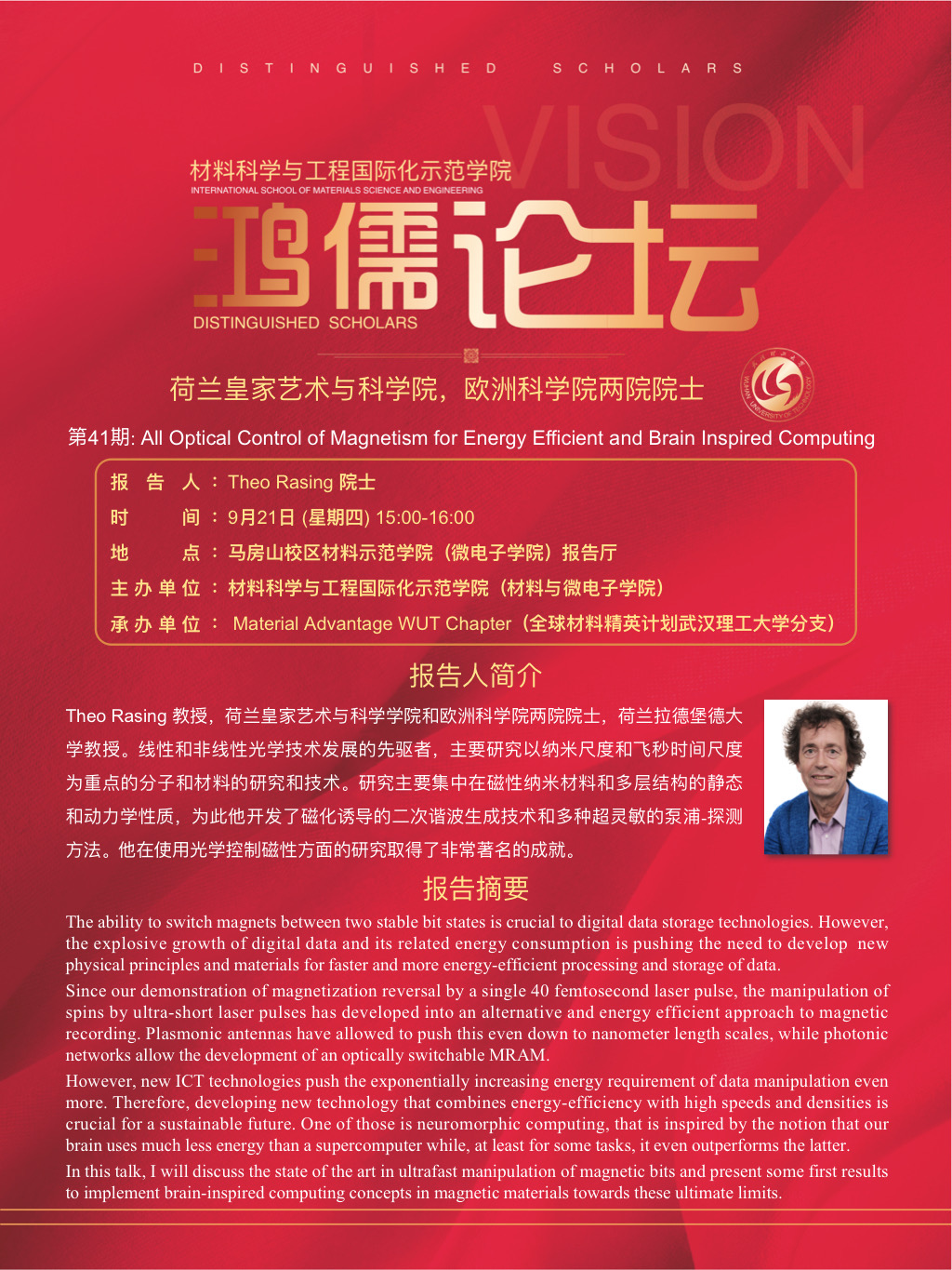 【鸿儒论坛】第41期:荷兰皇家艺术与科成人动作片,欧洲科成人动作片两院院士Theo Rasing教授学术报告会