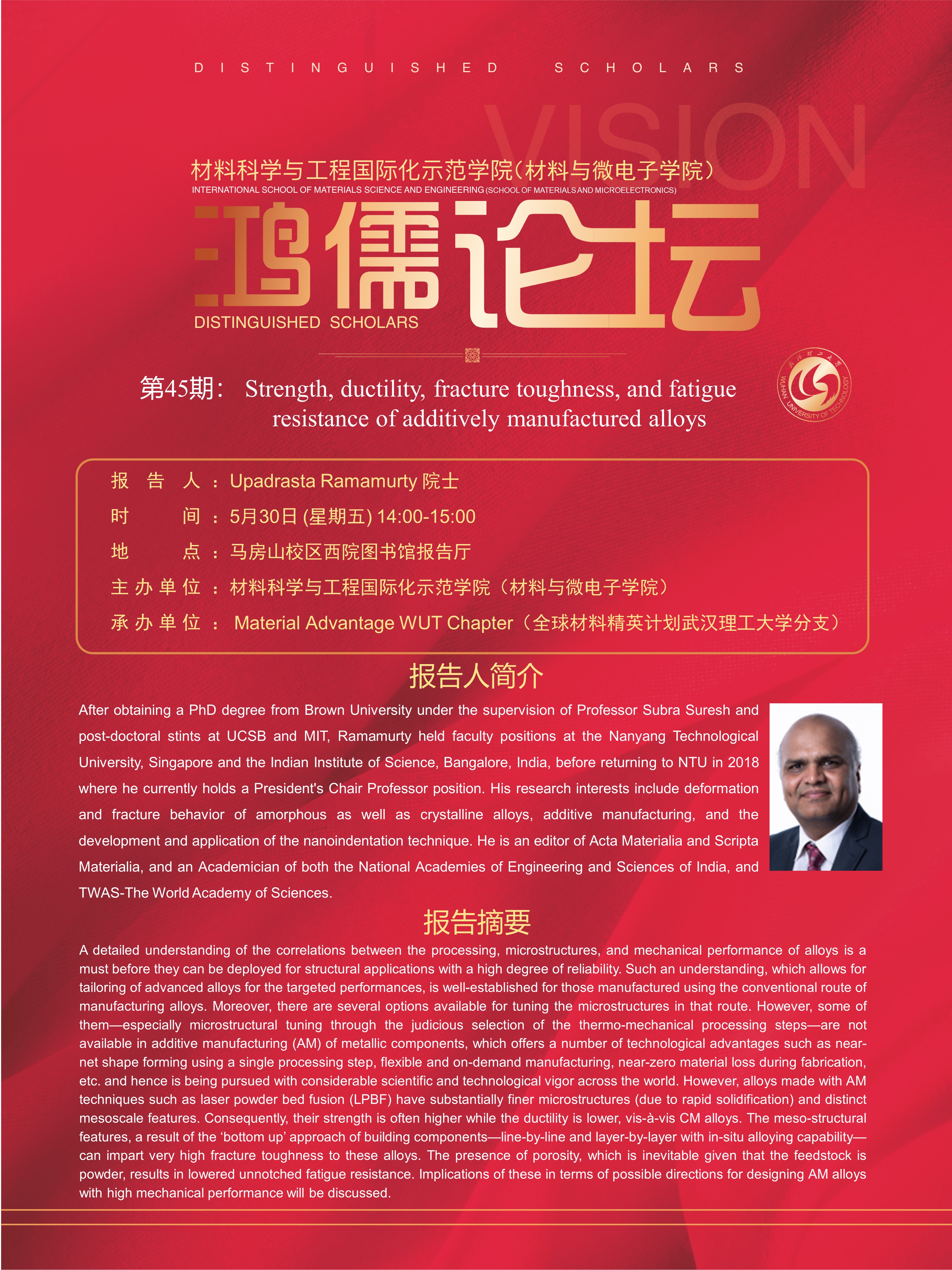 【鸿儒论坛】第45期:Strength, ductility, fracture toughness, and fatigue resistance of additively manufactured alloys