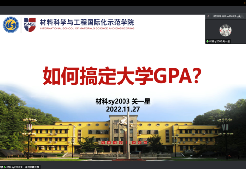 期末考试临近,为帮助2022级新生充分备考,11月27日晚,成人动作片 学生会邀请材科sy2003班关一星同学作期末备考经验分享。