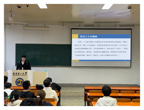 为响应学工部号召,深入学习党的二十大精神,引导同学们在新学期积极奋进,3月5日下午,材科sy2103班在鉴三503教室开展“开学第一课”主题班会。本次班会由权益委员葛军杰主持,材科sy2103班全体同学参加。